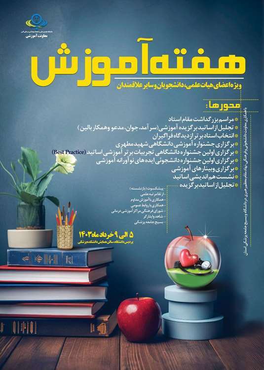 در مراسم هفته آموزش سال 1403 برای اولین بار انتخاب استاد نمونه علمی و اخلاق حرفه ای از دیدگاه دانشجویان با شرکت ایشان در انتخابات از طریق لینک https://education.abzums.ac.ir/master فراهم شده است.